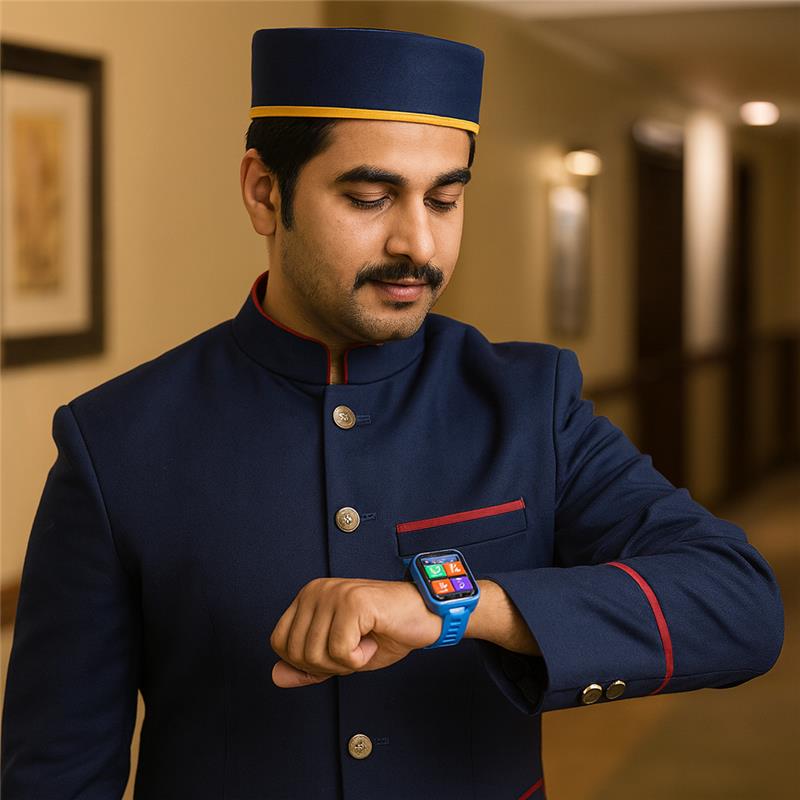 Our advanced wearable for hotels ensures safety, seamless communication, and real-time visibility, giving the hotel managers complete operational control.